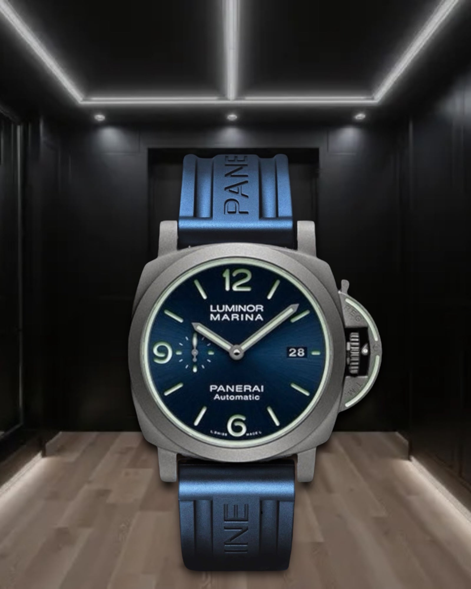 Panerai Luminor Marina "70 Years Of Luminor" Blue Dial Sundblasted Titanium Blue Rubber Strap 44 mm