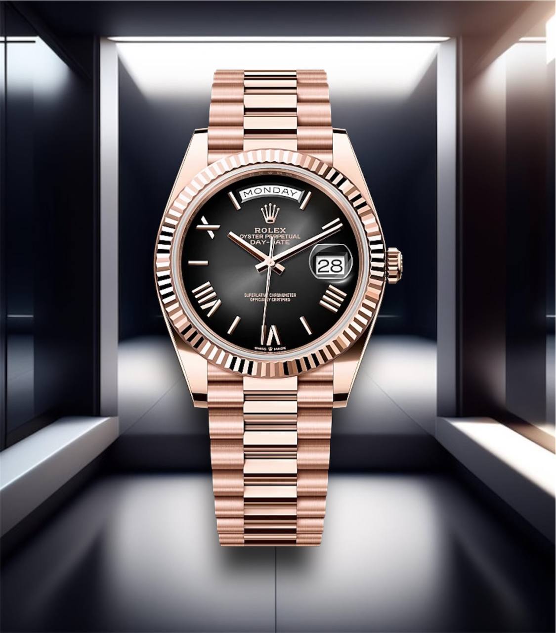 Rolex Day-Date Μονομπλοκ βραχίολι, αποσπώμενο στέμμα για εύκολο καθαρισμό ή αντικατάσταση, 40 χιλ. διάμετρος. |